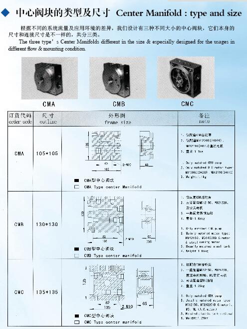 中心閥塊的類型及尺寸